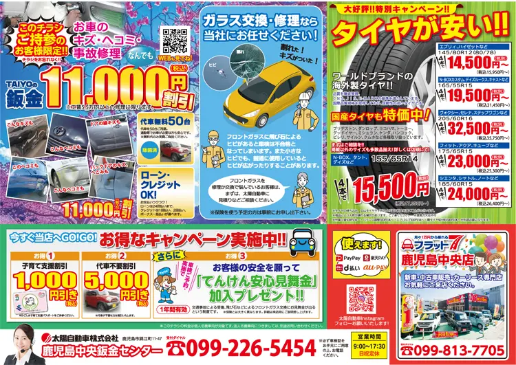 鹿児島中央車検センターを運営する太陽自動車株式会社では、お車の整備だけでなくお車のキズ・ヘコミ直しも得意としています。